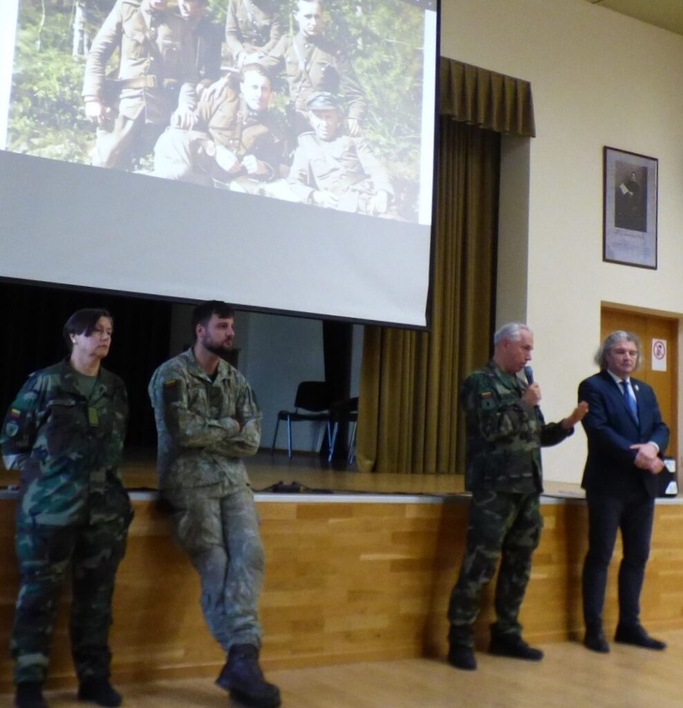 „Istorijos pamokoje kitaip” apie Lietuvos šaulius ir partizaninio karo Lietuvoje (1944-1953) reikšmę kalbėjo LŠS Karaliaus Mindaugo 10-osios rinktinės,Vilniaus šaulių 1003-osios kuopos vadas dr. Kostas Ivanauskas, kuris vėliau moksleivius pakvietė stoti į Lietuvos šaulių sąjungą.